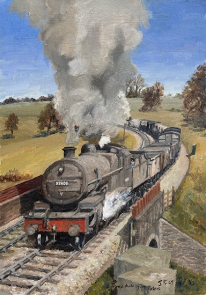 The trust have recently acguired the trackbed of this section of the line formation, known as the Redan Curve, so it is fitting that our newest print shows Class 7F No.53806 hauling a southbound freight (with assistance at the rear) along this section and about to cross the Redan Bridge.